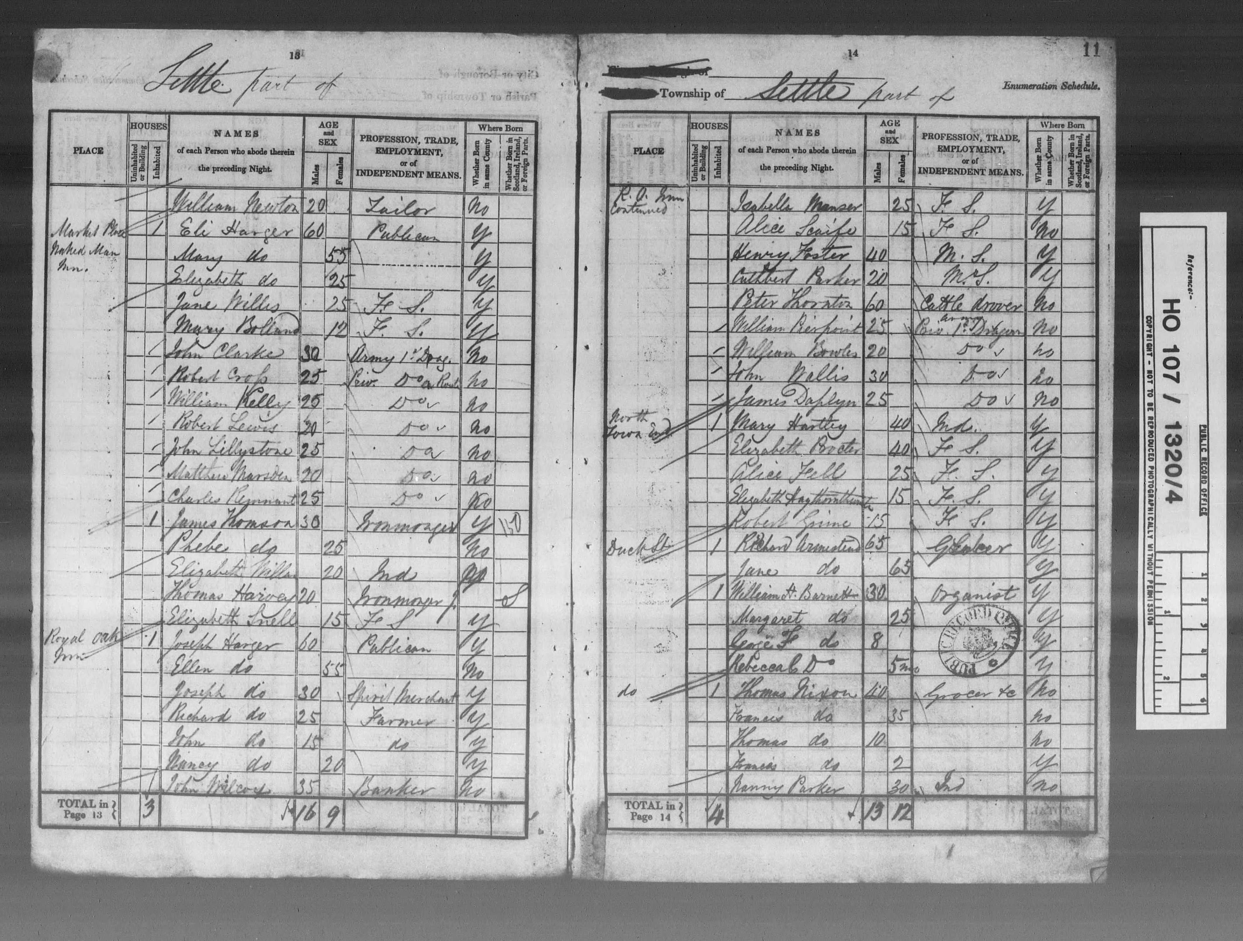 Pubs: In the 1841 Census, two brothers Eli (1777-1845) and Joseph (1780-1848) Harger were listed at the Naked Man and the Royal Oak, respectively, neighbouring pubs in Settle Market Square. Both were tenant landlords of their establishments.